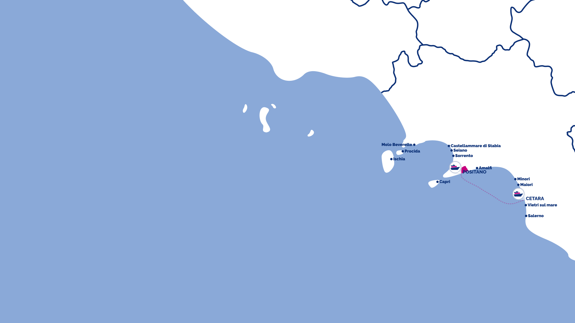 La ligne Cetara Positano relie par la mer les deux splendides localités de la côte amalfitaine. D’avril à octobre, environ six liaisons quotidiennes avec escale à Amalfi sont effectuées.