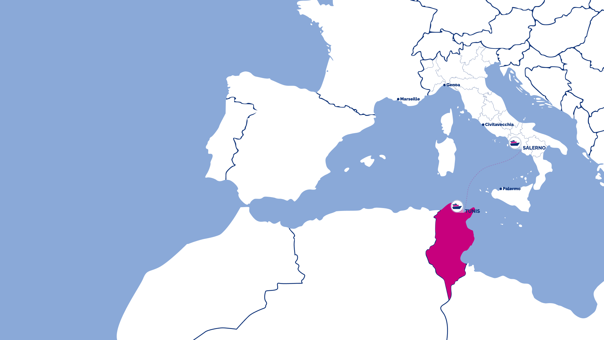 Pour acheter le billet de ferry au départ du port de Salerne pour Tunis comparez sur FerryBooking24 les horaires et les prix des compagnies de navigation et choisissez la combinaison au meilleur prix.